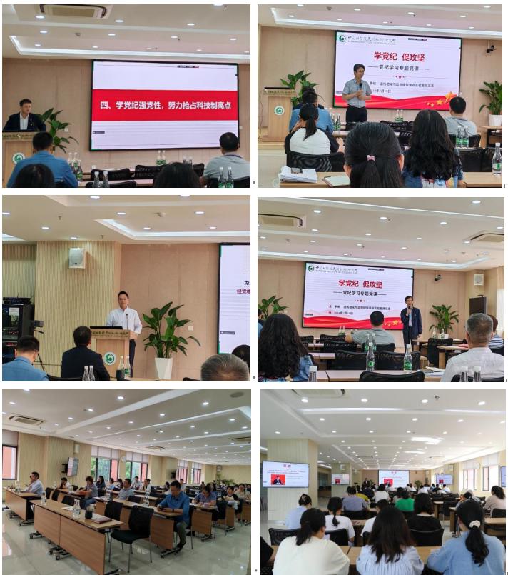 首先,李明作《学党纪 促攻坚》专题报告。他介绍了开展党纪学习教育的重大意义,详细阐述了党纪学习教育是我们党的光荣传统和优良作风,是全面从严治党的治本之策,也是新时代我们党实现以中国式现代化全面推进中华民族伟大复兴的必然要求。接着,他为大家讲述了修订的《中国共产党纪律处分条例》(以下简称“《条例》”)的历史沿革和时代背景,并对《条例》的主要内容、使用范围以及突出特点等进行了详细解读。最后,结合抢占科技制高点对我国高水平科技自立自强的重大战略意义,他指出,此次党纪学习教育对抢占科技制高点提供了坚强的纪律保障,希望大家把党纪学习教育与抢占科技制高点各项任务相结合,严格遵守政治纪律和政治规矩,规范管理和使用科研经费,坚持学术标准,坚守诚信底线,敢于担当,大力弘扬科学家精神,为加快抢占科技制高点、实现高水平科技自立自强、建设科技强国再立新功。