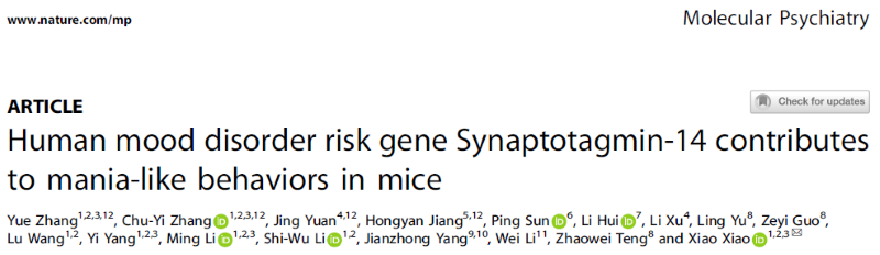 两项研究从遗传风险基因到行为表型,系统揭示了NEK4与SYT14在心境障碍发病中的新机制,不仅为疾病生物学基础提供新见解,也为开发靶向干预策略奠定了实验依据。上述研究工作依托“云南省动物模型与人类疾病机理重点实验室”开展,获得国家科技部、国家自然科学基金委、云南省科技厅和中国科学院等项目资助。