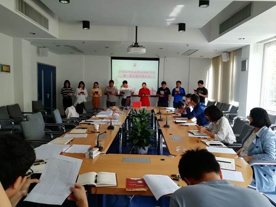 会议的上半部分刚开始,参会党员全体通过了确定入党申请人孙超为入党积极分子。紧接着,支部纪律委员杨坤凤向各位同志介绍云岭先锋APP的使用,以及宣布本支部所辖工作人员推选妇女委员的推选结果。支部书记向本本支部上半年过政治生日的同志颁发政治生日卡片,并重温入党誓词。
