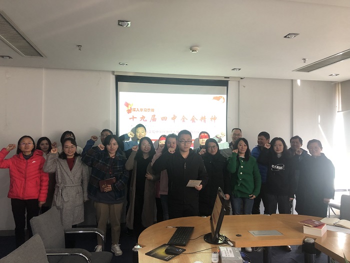 接着,支部书记李维薇带领党员学习了党的十九届四中全会精神,详细阐述了中国特色社会主义制度的优越性对推进国家治理体系和治理能力现代化的重要意义和紧迫性,坚定中国特色社会主义道路自信、理论自信、制度自信、文化自信,按照“四个意识”、“四个自信”和“两个坚决维护”严格要求自己。并结合中科院新的办院方针,鼓励大家为实现“两个一百年”奋斗目标而努力工作。
