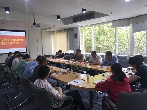 6月24日上午,昆明动物所召开扶贫工作交流会,牛街镇纪委书记向心力、驻甲乙己村工作队队长普钦、甲乙己村党总支书记白发旺、副书记马自昌、所长姚永刚、副所长施鹏、纪委书记王雨华、副所长李心祥等挂钩扶贫干部参加会议,会议由党委办公室负责人白彧主持。
