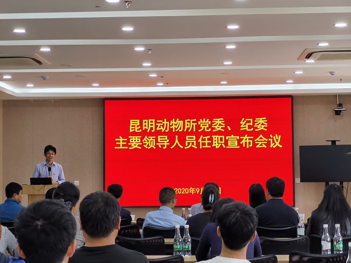 2020年9月11日,昆明动物研究所新一届党委、纪委主要领导人员任职宣布大会在茨坝新园区召开,大会由昆明动物研究所所长姚永刚主持。中科院昆明分院分党组副书记、副院长(正局级)沈华、组织人事处处长张忠滨、党委办公室副主任(主持工作)陈嘉琪出席了本次大会。昆明动物所领导班子成员、党委委员、纪委委员、中层干部、正高级专业技术人员、党支部书记及职工代表等70余人参加了会议。