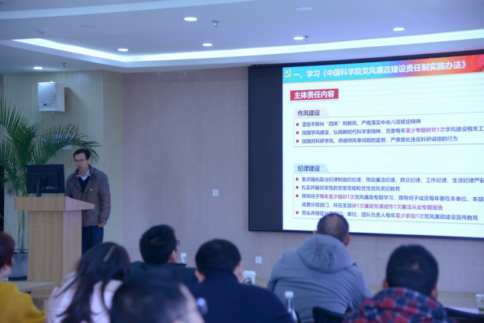 党委副书记、纪委书记王雨华首先作了《守好从业净土 筑牢思想防线》专题报告,领学了《中国科学院党风廉政建设责任制实施办法》的主要内容,并带领与会人员学习了近年来国家和中科院关于科研诚信建设的论述和相关文件精神。会议传达了中科院警示教育大会精神,通报了2019年国家自然科学基金委查处的科研失信行为、研究所政治巡视和审计等发现的典型问题、2018年以来中科院查处的党员干部违纪违法等共25个典型案例。会议要求广大党员干部职工以案为鉴,自觉做到遵规守纪,始终保持清廉本色,确保权力规范运行。