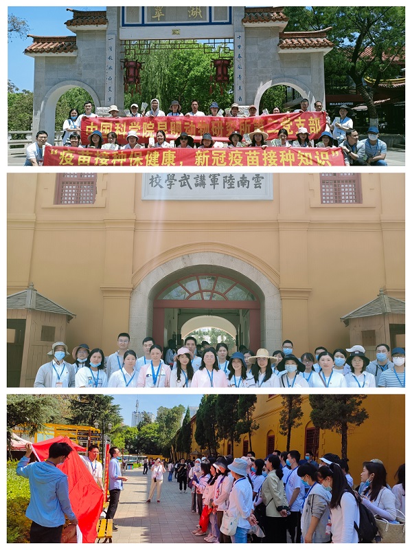 科普宣传活动结束后,第二党支部联合第六党支部参观了云南陆军讲武堂并重温了入党誓词,共同开展“踏寻红色足迹,重温百年党史”党史学习教育。通过参观中国远征军主题展,学习了云南人民对滇西抗战做出的重要贡献,了解中国远征军用鲜血和生命书写的抗日战争史上极为悲壮的那段历史。