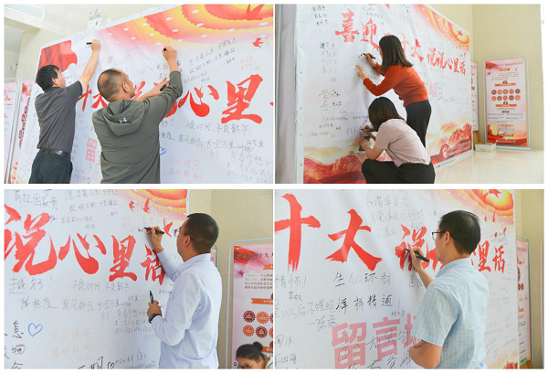 会后,支部组织开展了“喜迎二十大,说说心里话”主题党日活动。此次留言活动采取线上线下两种形式,所有人员通过线上对党说出了心里话,随后又到一楼大厅留言板上写下了美好祝愿。通过此次主题党日活动,支部党员充分表达了爱党爱国爱院爱所之情,进一步坚定了理想信念、牢筑了思想根基。