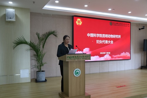 大会在庄严的国歌声中开幕。徐菊仙代表昆明分院妇委会向大会的召开表示热烈祝贺,对昆明动物所第一届妇委会工作成果给予了充分肯定,希望新一届妇委会坚持围绕中心,服务大局,加强自身建设,认真履职尽责,在新时代展现新作为,把妇委会建设成为党开展妇女工作的坚强阵地和深受广大妇女信赖、热爱的温暖之家。