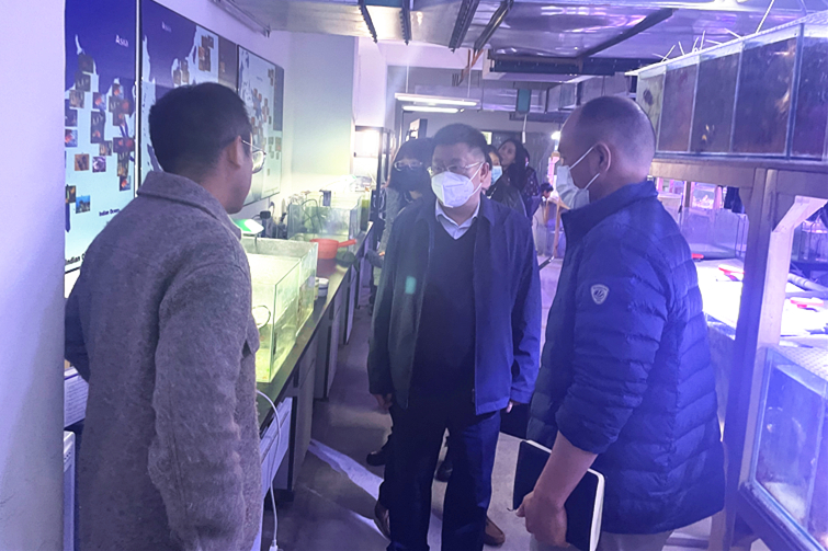 李志恩一行实地参观了珊瑚礁物种育种实验室、多功能运动场、图书馆、哺乳室等场所,详细了解工会阵地建设情况、使用情况,听取了昆明动物所历史沿革、科研布局、人才队伍、工会工作等基本情况介绍。