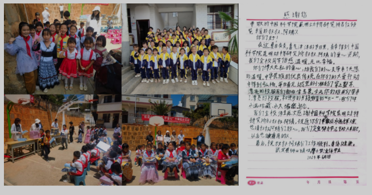 活动中,武定县吆鹰小学李校长详细介绍了学校的概况以及孩子们的生活学习情况。随后,在捐赠仪式环节,疾病药物研究党支部党员为全体学生送上了温暖的节日祝福、《中国奥秘传奇》等90册科普书籍以及学习用品。勉励学生利用好新设立的校园图书角,激发阅读兴趣,拓展学习视野,把关心关爱转为自强不息的动力。学生代表宣读了感谢信,表示要努力学习,长大后做个对祖国对社会有用的人。接着,将昆明丰科生物科技有限公司赞助的45套校服发给每一位学生,大家兴高采烈地换上新校服并共同在教学楼前合影留念。最后,学校向支部代表赠送锦旗“关爱孩子成长,播撒大山希望”。