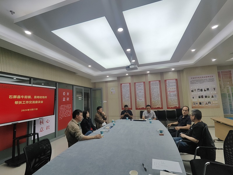 5月21日下午,昆明动物所召开乡村振兴工作交流会,牛街镇党委书记李国武、纪委书记王曦、综合执法队人员孔俊仕,研究所党委书记施鹏、党群人事部部长黄加元、党群人事部党委办公室主任白彧、驻村干部何桂武等参加会议,会议由白彧主持。