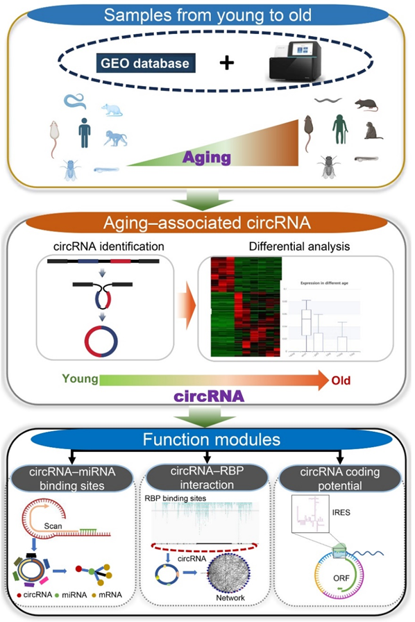图1. 跨物种衰老相关circRNA的鉴定和CircAge数据库功能概览