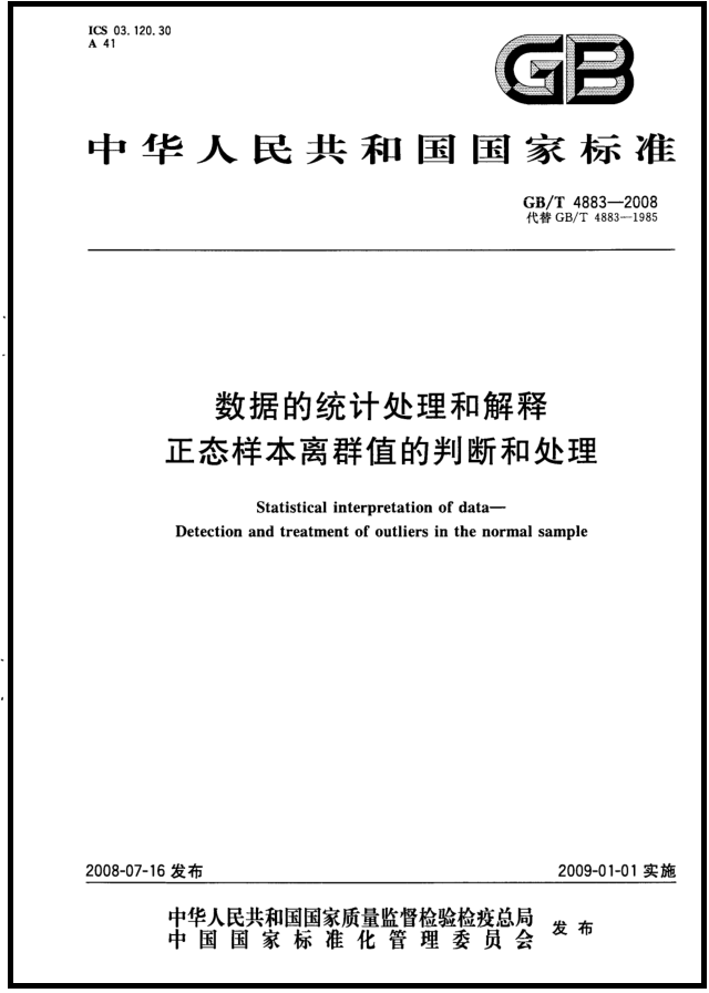 GBT 4883-2008 数据的统计处理和解释正态样本离群值的判断和处理.pdf