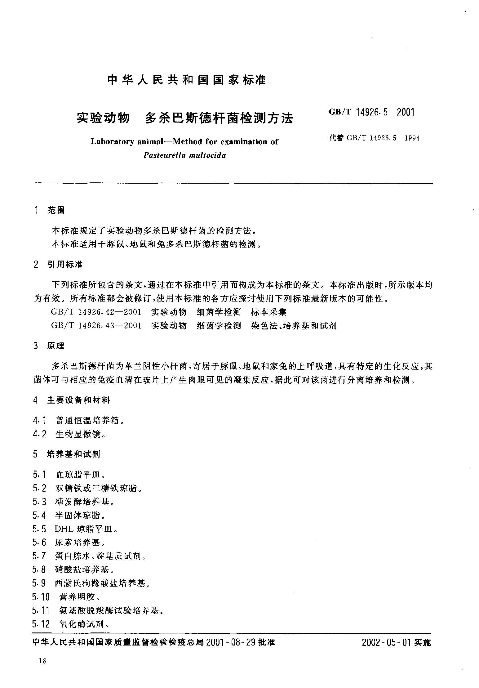 GBT 14926.5-2001 实验动物 多杀巴斯德杆菌检测方法.pdf