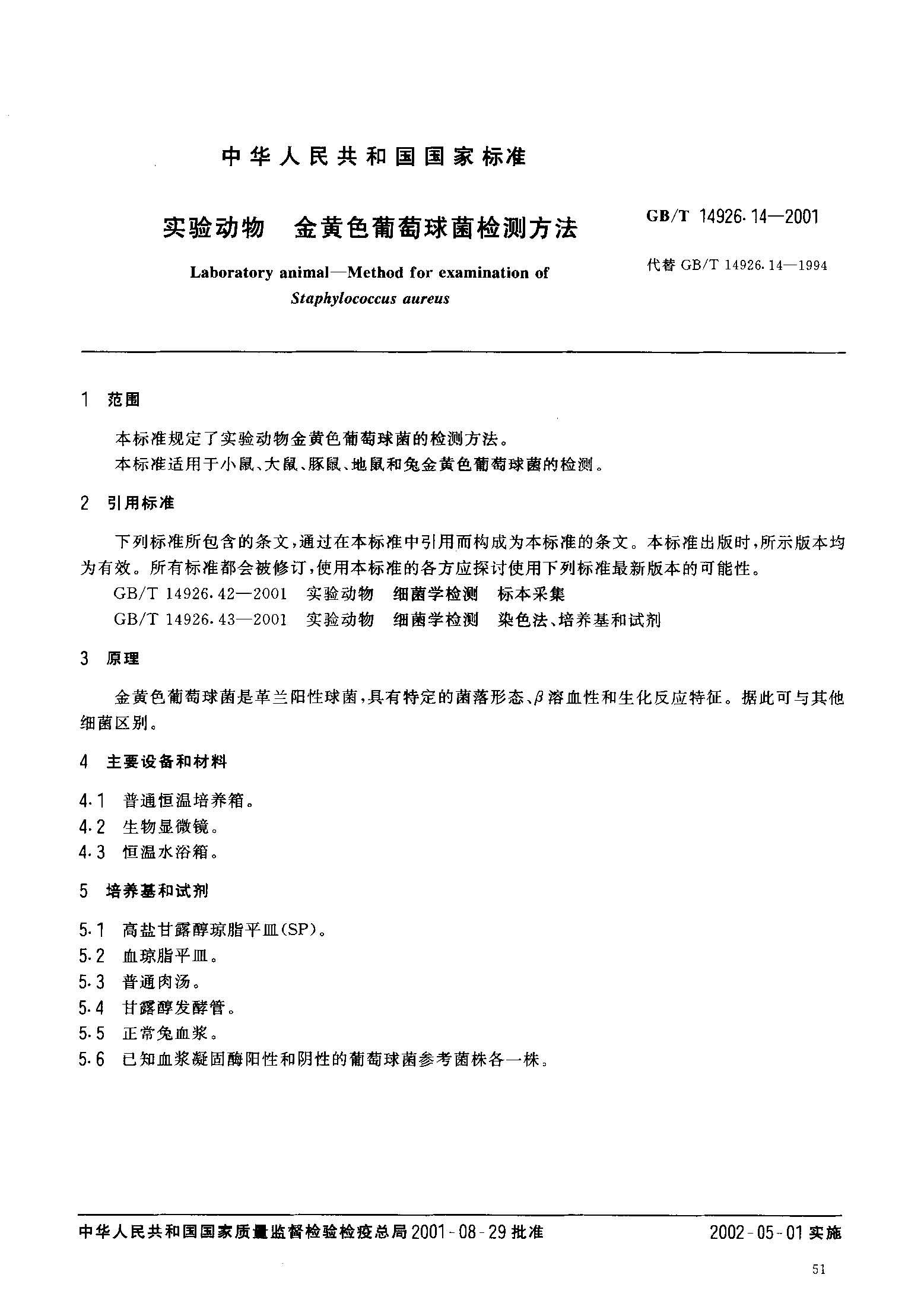 GBT 14926.14-2001实验动物 金黄色葡萄球菌检测方法.pdf