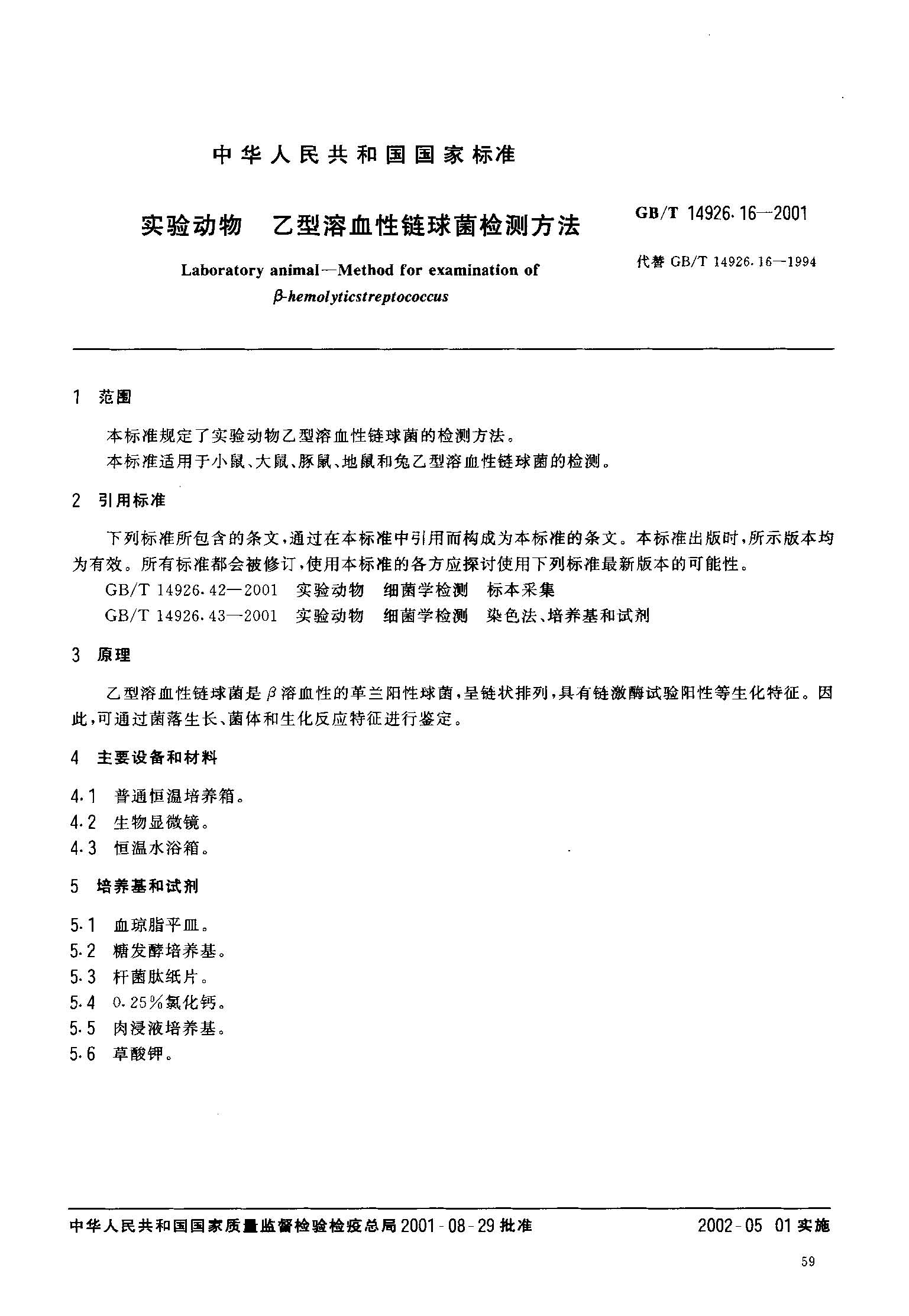 GBT 14926.16-2001实验动物 乙型溶血性链球菌检测方法.pdf