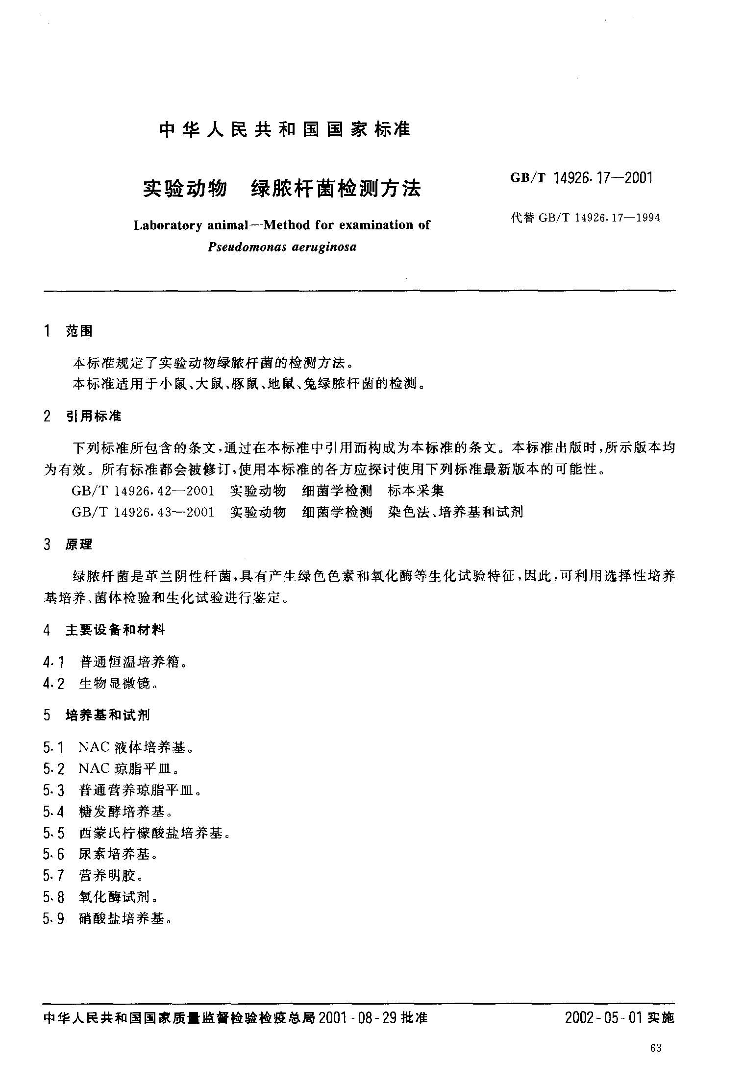 GBT 14926.17-2001 实验动物 绿脓杆菌检测方法.pdf