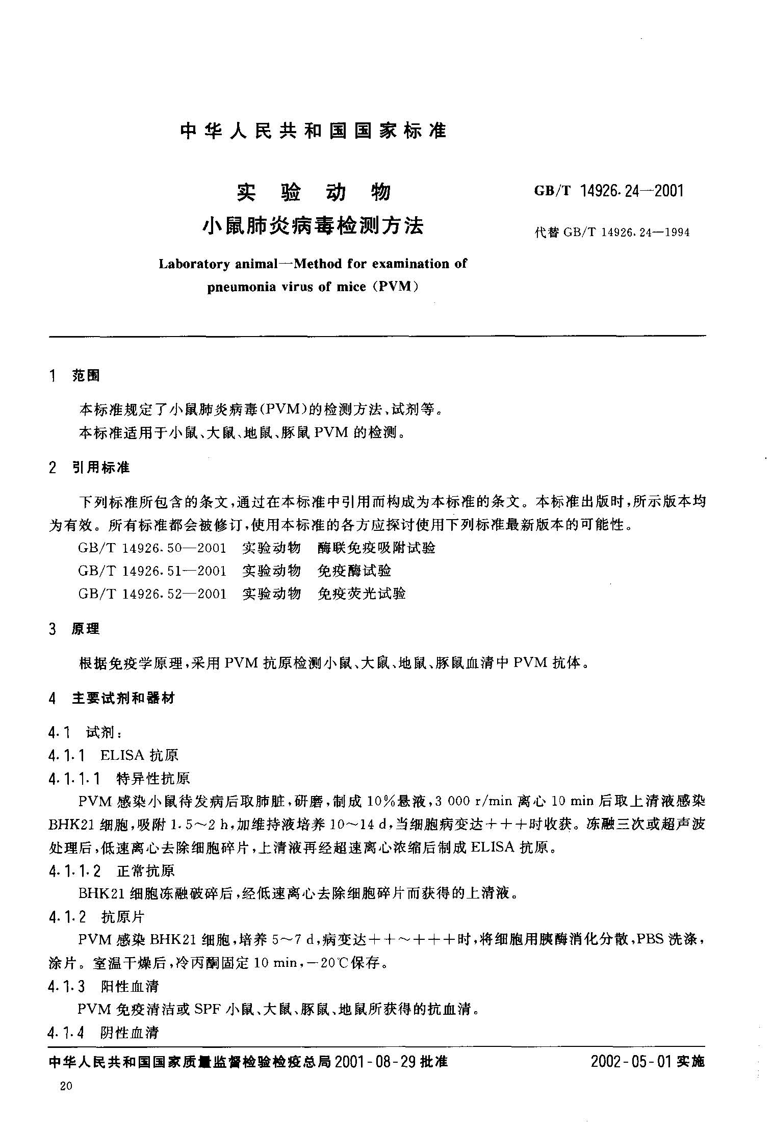 GBT 14926.24-2001实验动物 小鼠肺炎病毒检测方法.pdf