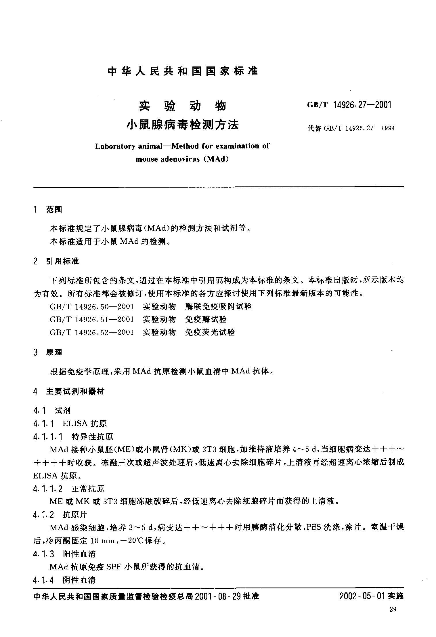 GBT 14926.27-2001实验动物 小鼠腺病毒检测方法.pdf
