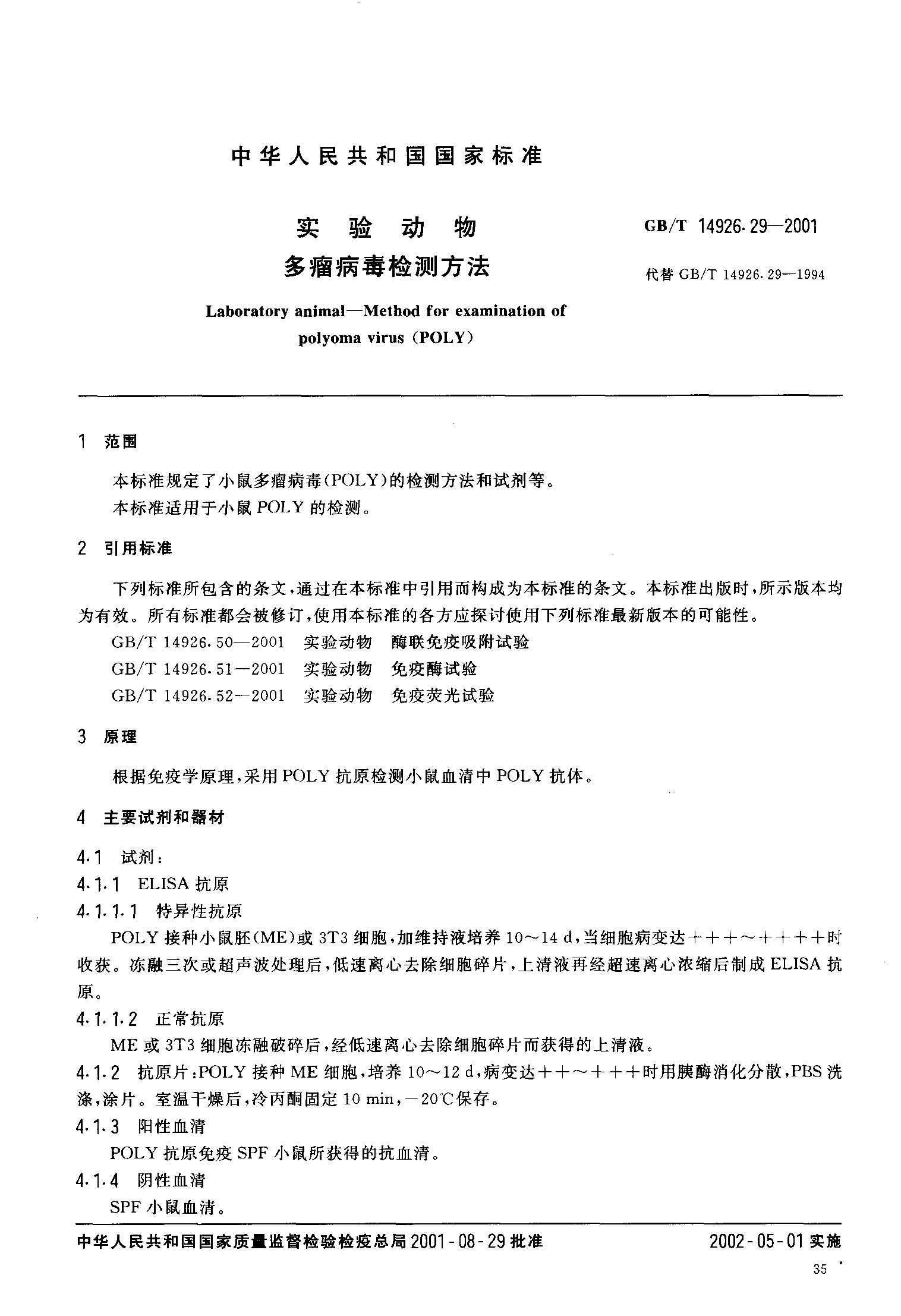 GBT 14926.29-2001实验动物 多瘤病毒检测方法.pdf