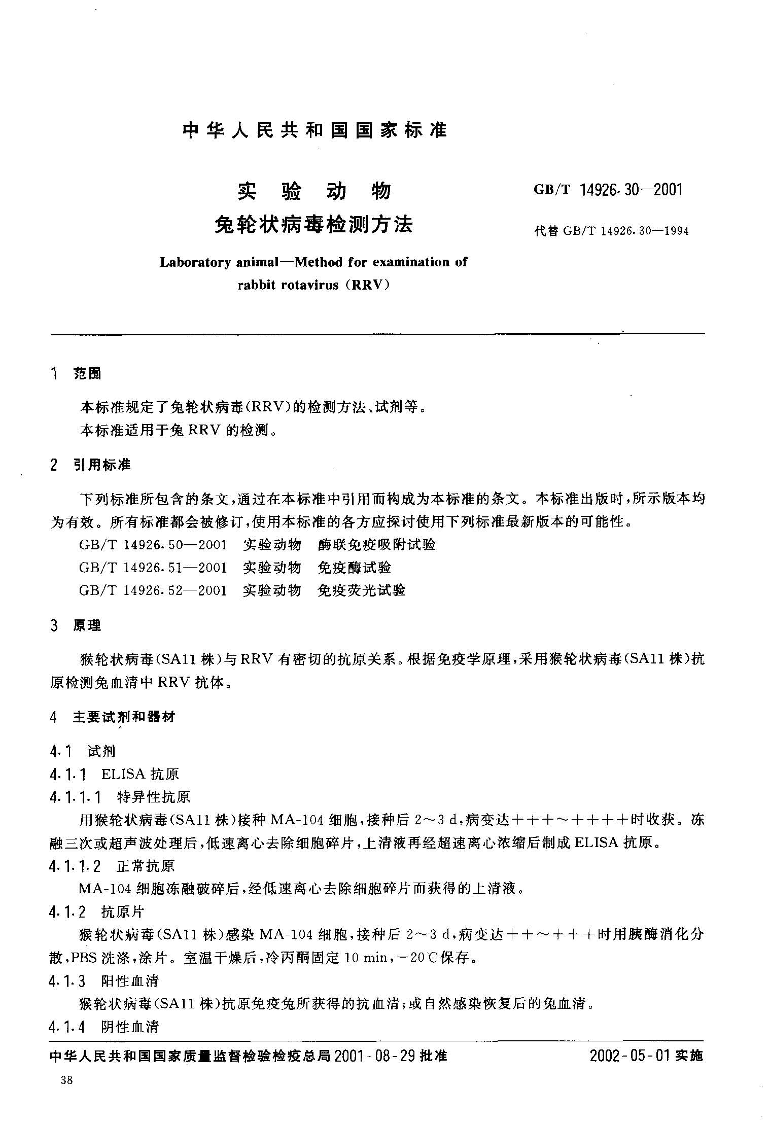 GBT 14926.30-2001实验动物 兔轮状病毒检测方法.pdf