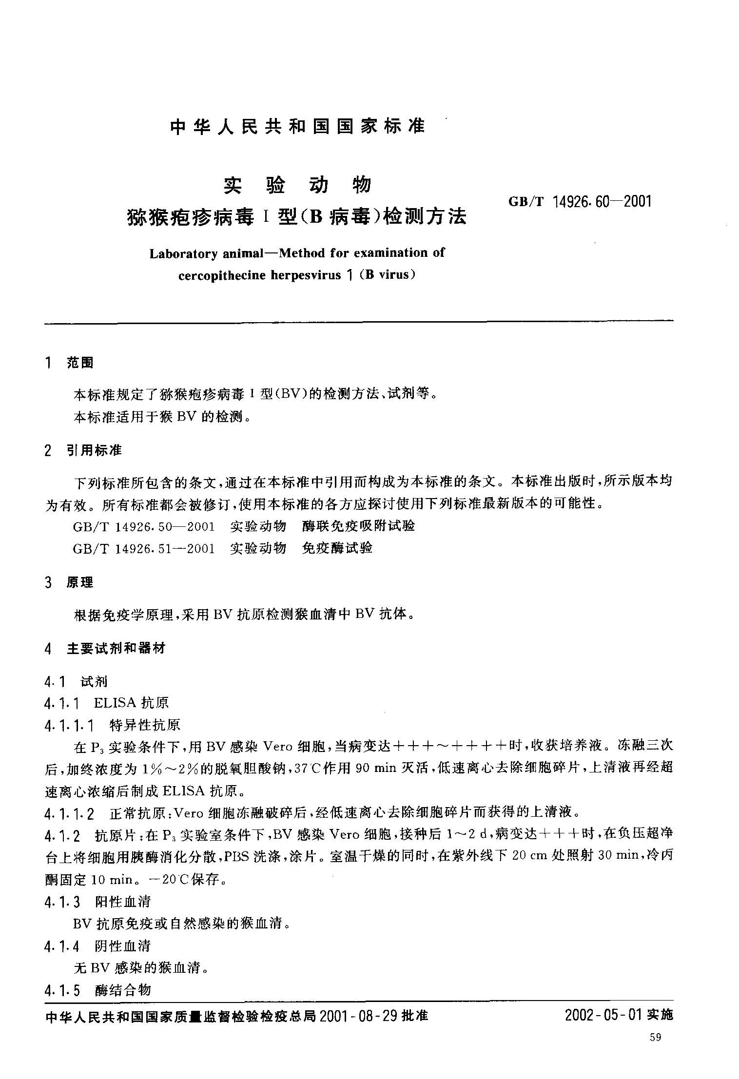 GBT 14926.60-2001 实验动物 猕猴疱疹病毒Ⅰ型(B病毒)检测方法.pdf