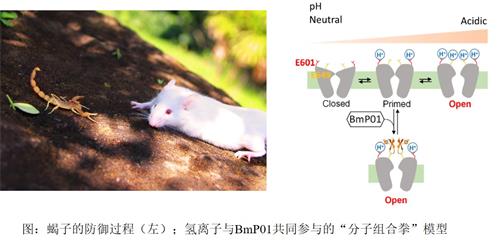 为了揭示蝎子捕食/防御分子策略,近日,E乐彩赖仞教授、杨仕隆博士和加州大学戴维斯分校郑劼教授领导的研究团队开展合作研究,揭示了蝎子蛰伤产生剧烈疼痛这一现象背后的分子机制。蝎毒中存在一种由29个氨基酸组成名为BmP01的神经毒素多肽,BmP01能够激活辣椒素受体TRPV1并如同品尝红辣椒一般产生快速并且剧烈的痛觉反应。有趣的是,与辣椒素不同,BmP01激活TRPV1受体还依赖蝎毒中存在的氢离子。与大多数产毒动物毒液一样,蝎毒是一种pH6.5左右的弱酸性物质,这种弱酸性存在生物学价值吗?他们的研究发现,在蝎毒的弱酸环境下,BmP01激活TRPV1的效率比在中性环境下要强两到三个数量级,从而诱导剧烈疼痛。反之,如果蝎毒不具有这种弱酸性环境,则无法高效激活TRPV1并产生疼痛。因此,在蝎子蛰伤产生剧烈疼痛的过程中,存在着这种以氢离子为材料的极为低廉但却十分高效的“分子组合拳”机制。这项研究工作揭示了毒液弱酸性环境拥有重要的生物学功能和蝎子捕食/防御分子策略,为临床上对蝎子蛰伤的认识和治疗提供了重要的理论基础,并为镇痛药物的研发提供了靶点。