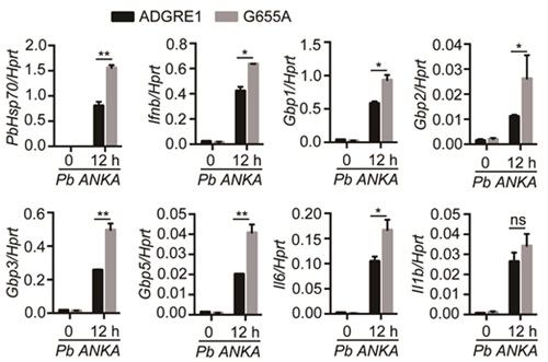 图2. ADGRE1- G655A突变在非洲家犬中增强对疟原虫感染的抵抗