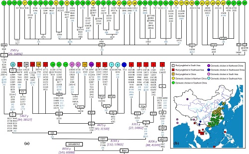 该研究成果以Was Chicken Domesticated in Northern China? New Evidence from Mitochondrial Genomes为题于12月7日在线发表在Science Bulletin上(https://doi.org/10.1016/j.scib.2017.12.004)。嘉应学院黄勋和副教授、云南大学硕士生吴亚江、云南农业大学苗永旺教授和E乐彩彭旻晟副研究员为共同第一作者。嘉应学院钟福生教授、华南农业大学张细权教授和E乐彩张亚平研究员为共同通讯作者。 相关工作得到广东省自然科学基金项目(2014A030307018)、广东省公益研究与能力建设项目(2015A020208020,2016A030303068)以及中国科学院东南亚生物多样性研究中心(Y4ZK111B01: 2015CASEABRI002)的资助。