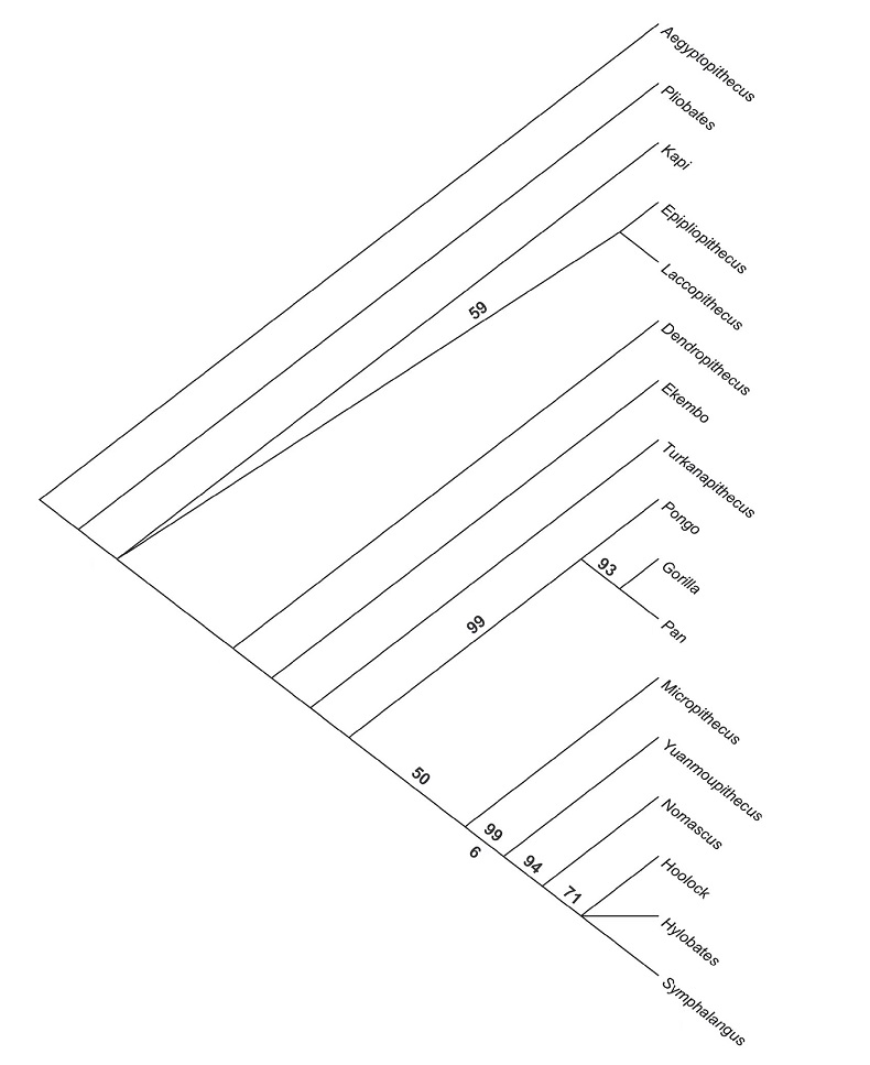此前发现于印度中中新世(距今12.5-13.8百万年)的一枚下第三臼齿,被命名为Kapi ramnagarensis, 原研究者声称为更早的长臂猿,研究团队经过详细的分析对比证实,这一发现不是长臂猿,而是与现生猿类没有密切关系的更原始的灵长类,可能与印度晚中新世古猿有亲缘关系。