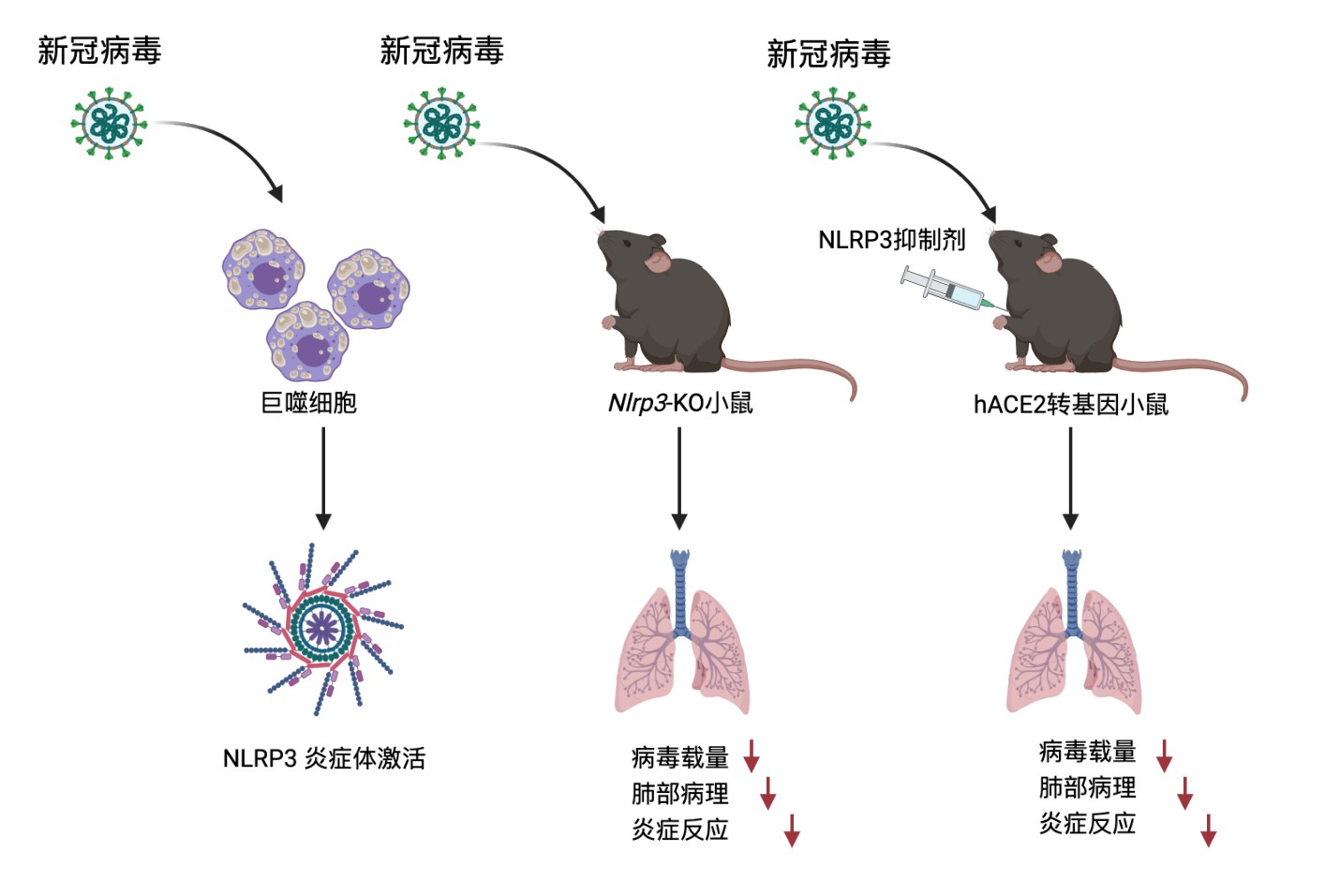特异性抑制 NLRP3炎症体有效降低新冠肺炎免疫过度激活,缓解小鼠新冠肺炎样病理改变