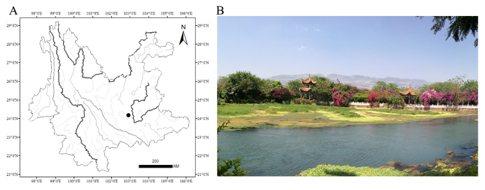 三角云南鳅(A)采集地,(B)生境照