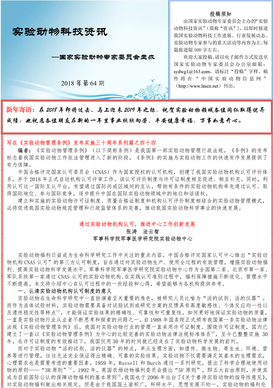 实验动物科技资讯(2018年第64期)
