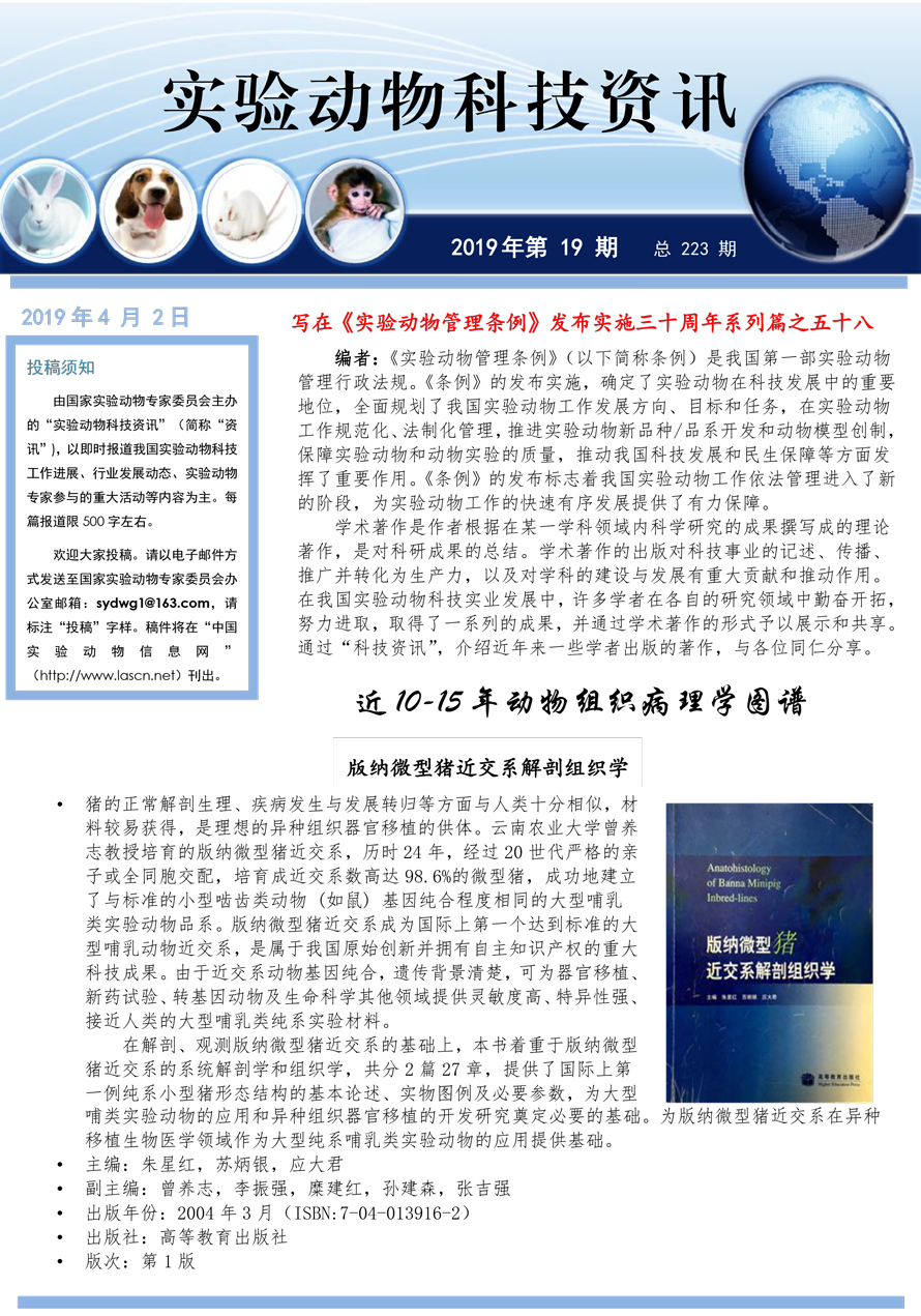 实验动物科技资讯(2019年第19期)