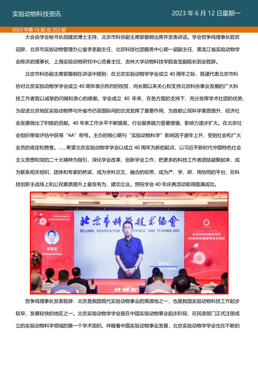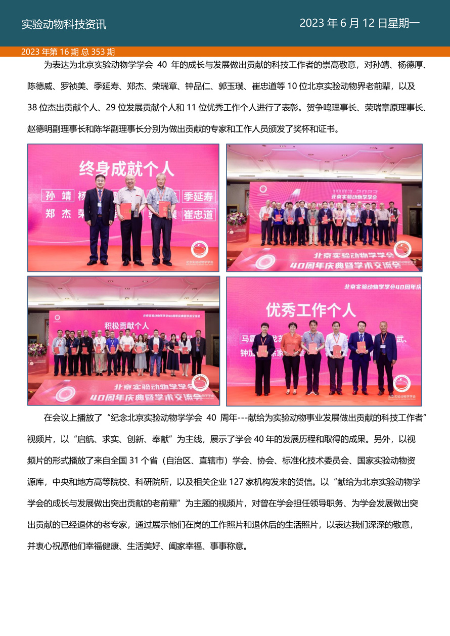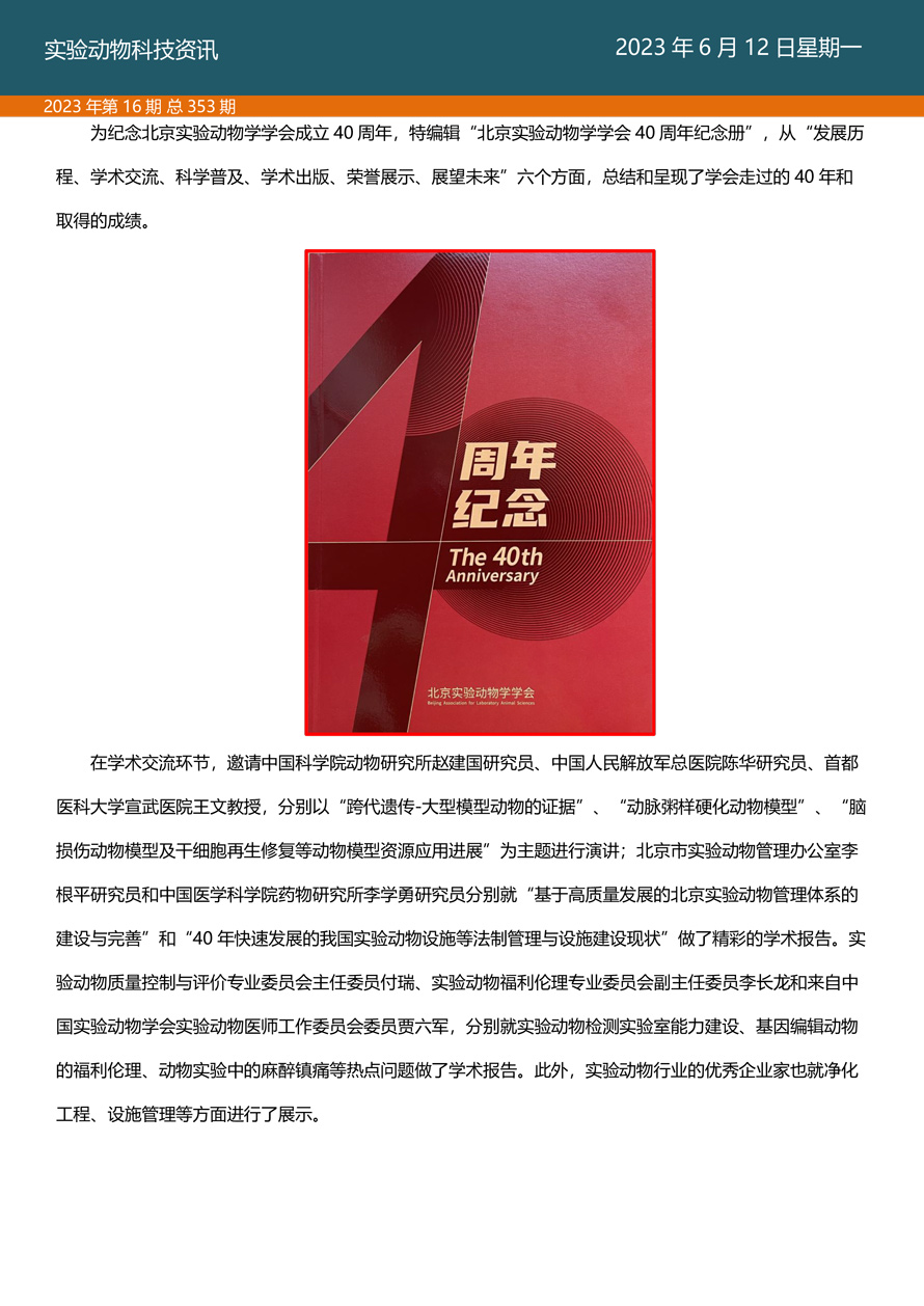 国家实验动物专家委员会工作活动简报由国家实验动物专家委员会主办,即时报道我国实验动物工作进展、行业发展动态、实验动物专家参与的重大活动等内容。本期主要内容——北京实验动物学学会40周年庆典暨学术交流会圆满落幕。