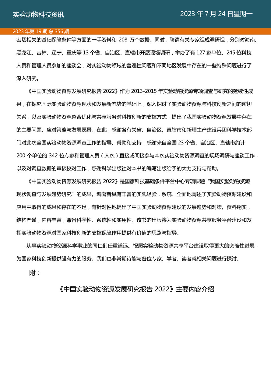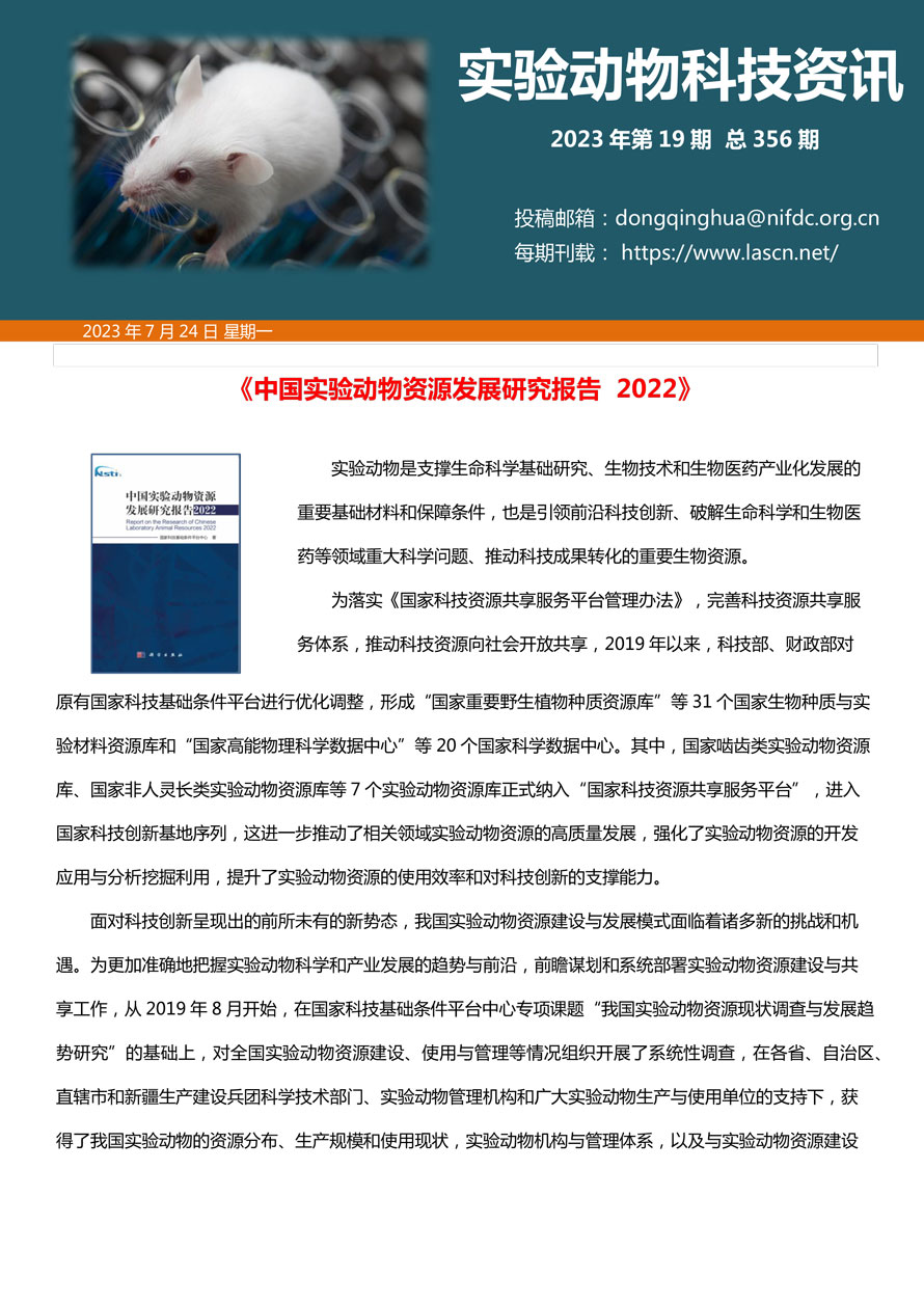 摘要:国家实验动物专家委员会工作活动简报由国家实验动物专家委员会主办,即时报道我国实验动物工作进展、行业发展动态、实验动物专家参与的重大活动等内容。本期主要内容——《中国实验动物资源发展研究报告 2022》。