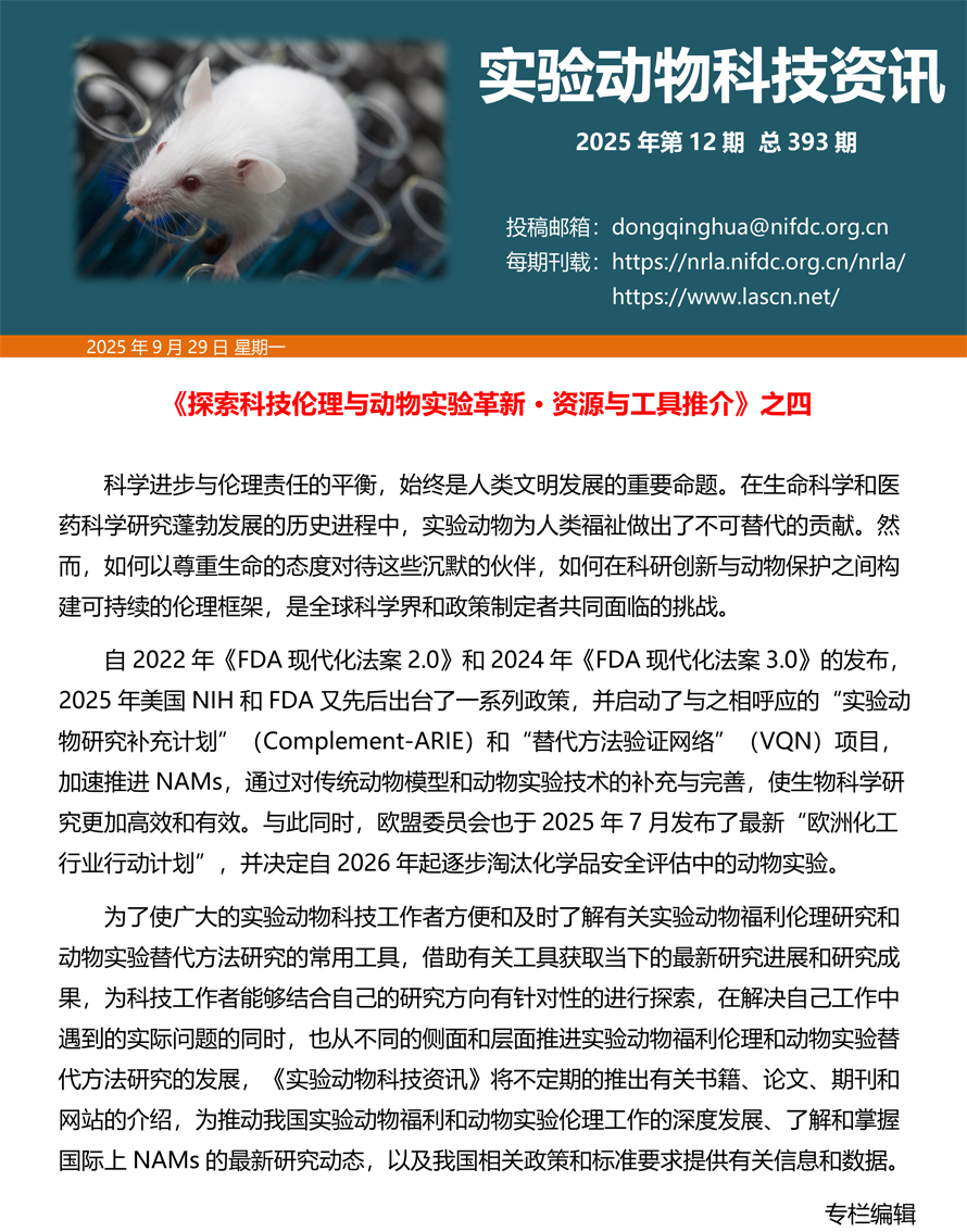 摘要:国家实验动物专家委员会工作活动简报由国家实验动物专家委员会主办,即时报道我国实验动物工作进展、行业发展动态、实验动物专家参与的重大活动等内容。本期主要内容——《探索科技伦理与动物实验革新·资源与工具推介》之四。