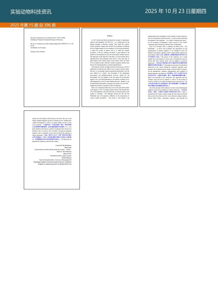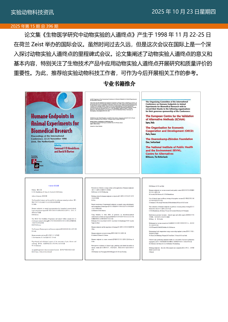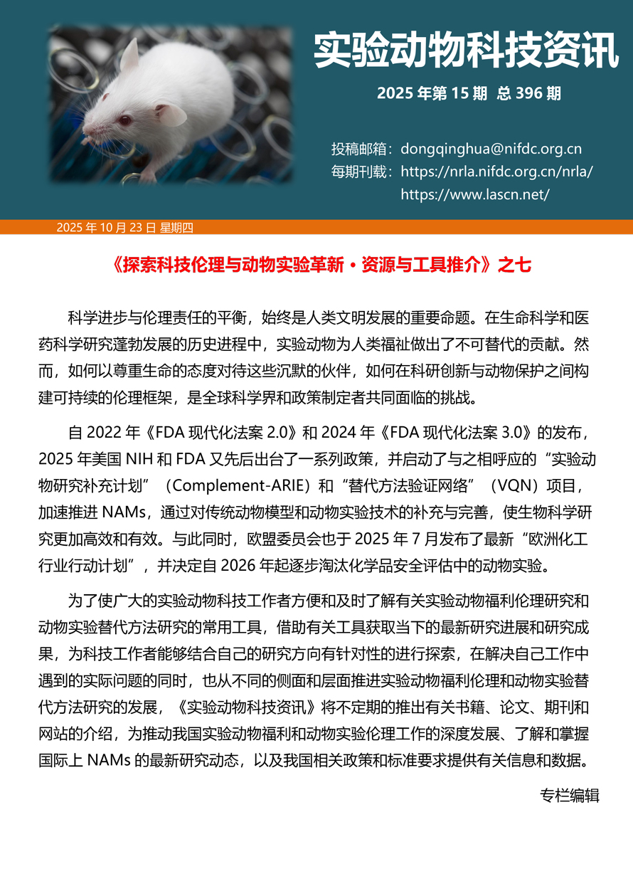 摘要:国家实验动物专家委员会工作活动简报由国家实验动物专家委员会主办,即时报道我国实验动物工作进展、行业发展动态、实验动物专家参与的重大活动等内容。本期主要内容——《探索科技伦理与动物实验革新·资源与工具推介》之七。