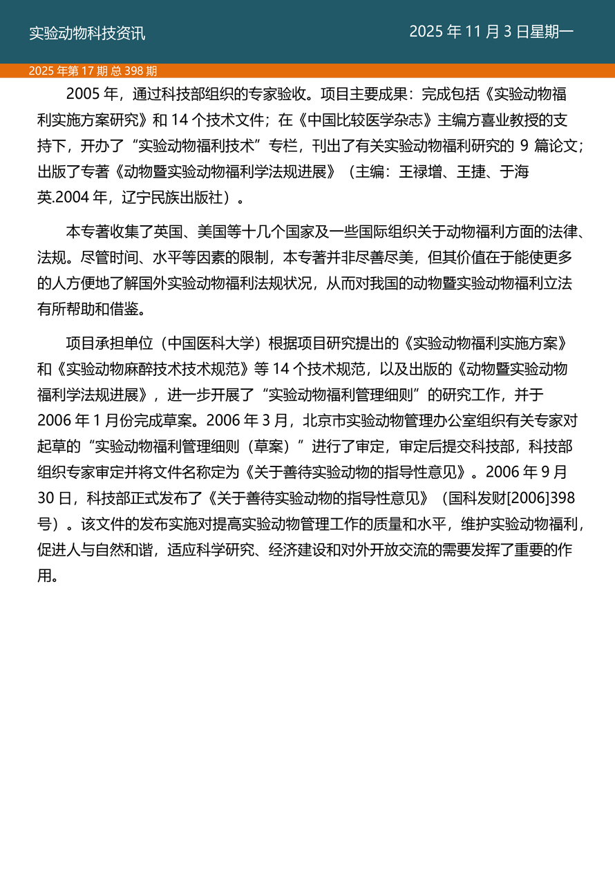 2025-11-03 来源:国家实验动物专家委员会 作者: