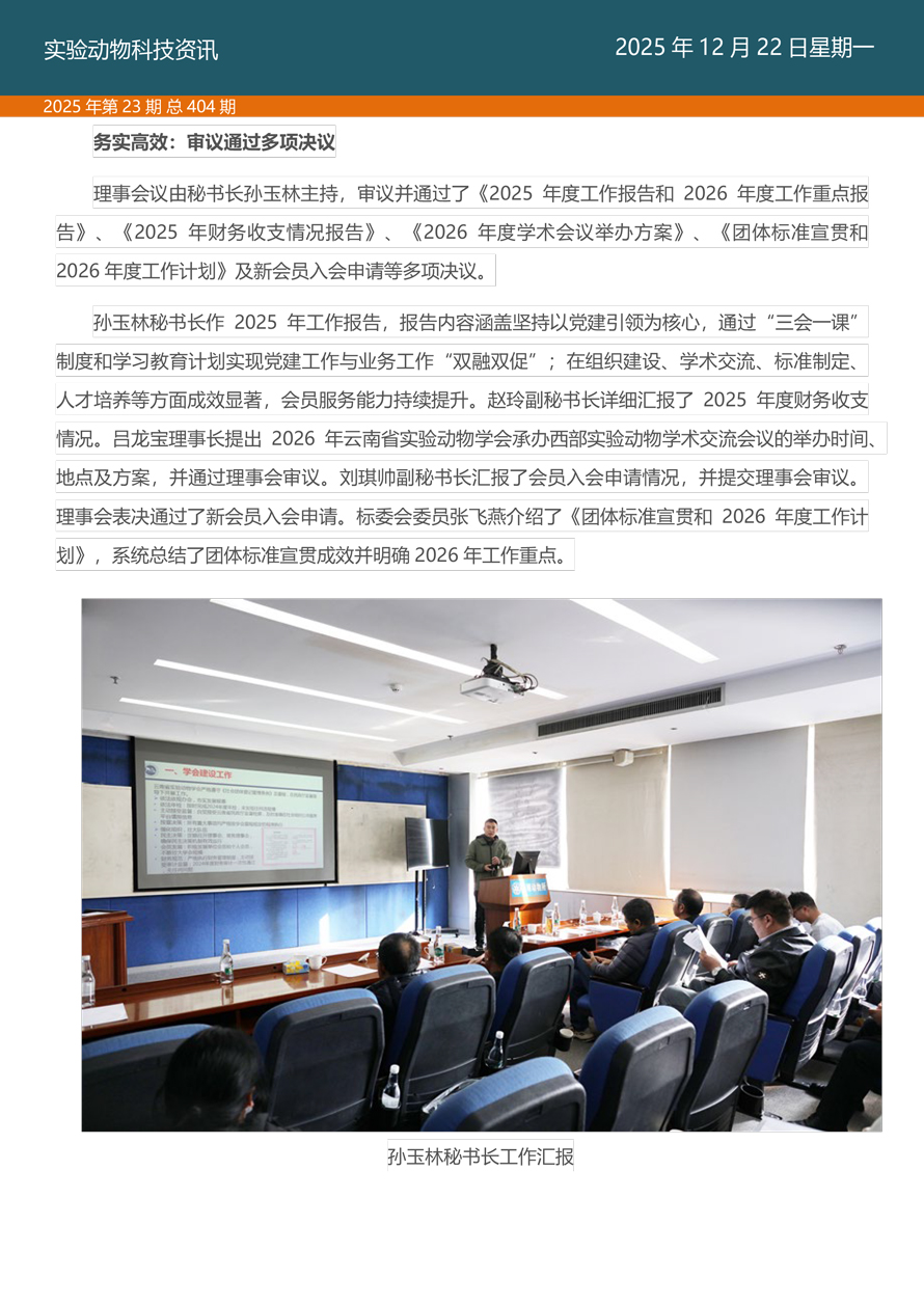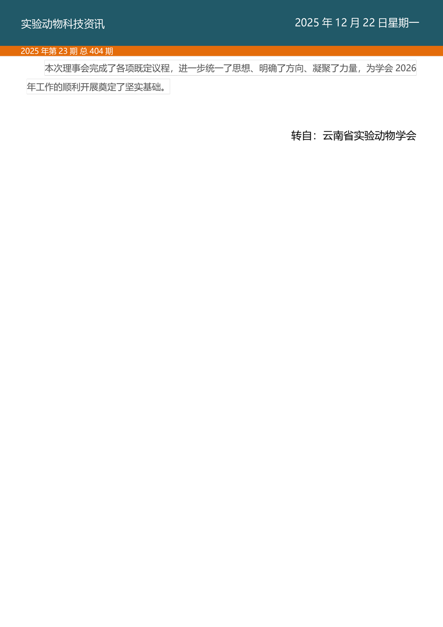 摘要:国家实验动物专家委员会工作活动简报由国家实验动物专家委员会主办,即时报道我国实验动物工作进展、行业发展动态、实验动物专家参与的重大活动等内容。本期主要内容——云南省实验动物学会理事会暨标准化专业委员会在昆明成功召开。