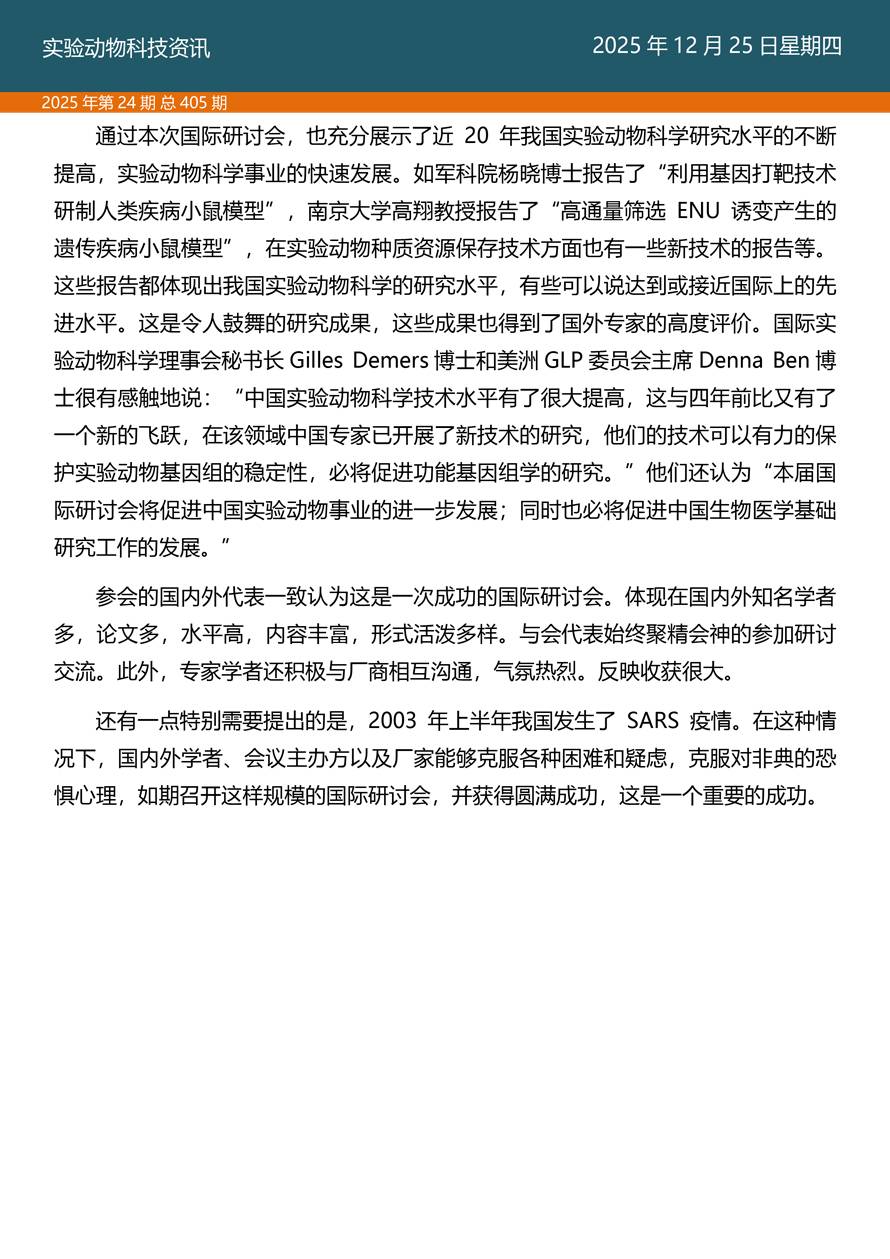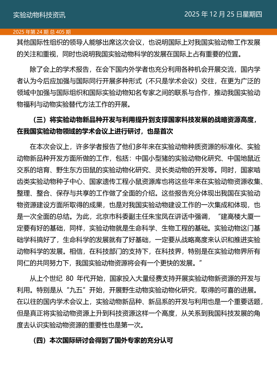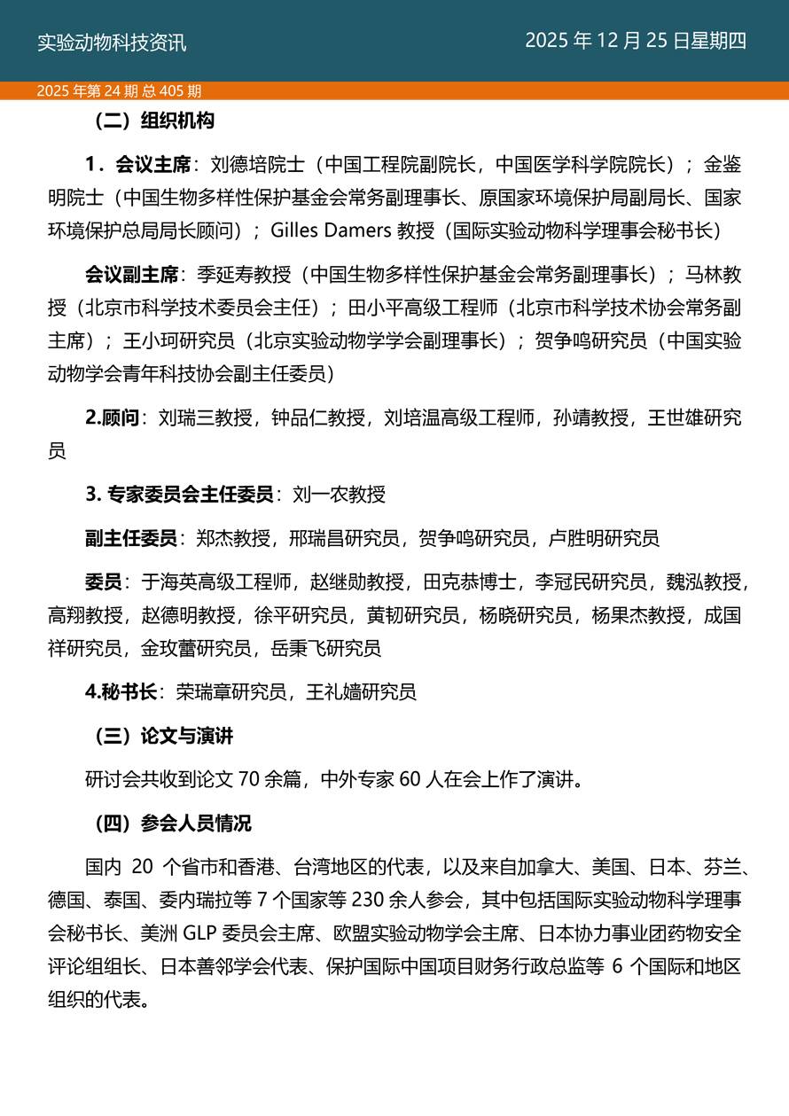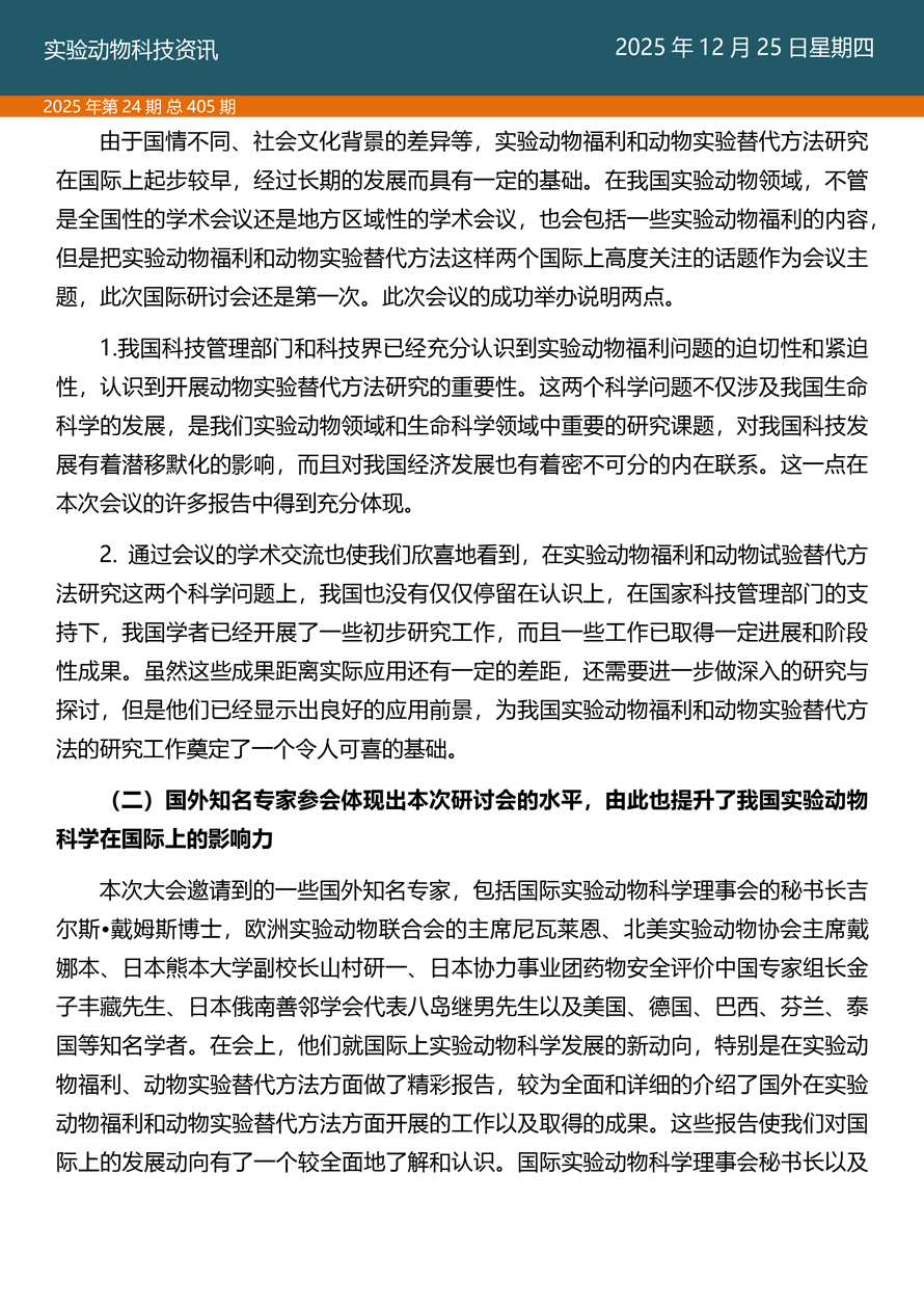 摘要:国家实验动物专家委员会工作活动简报由国家实验动物专家委员会主办,即时报道我国实验动物工作进展、行业发展动态、实验动物专家参与的重大活动等内容。本期主要内容——《探索科技伦理与动物实验革新·资源与工具推介》之十三、实验动物福利作为科学问题在中国启动的标志性会议——记第四届生物多样性保护与利用高新科学技术国际研讨会。