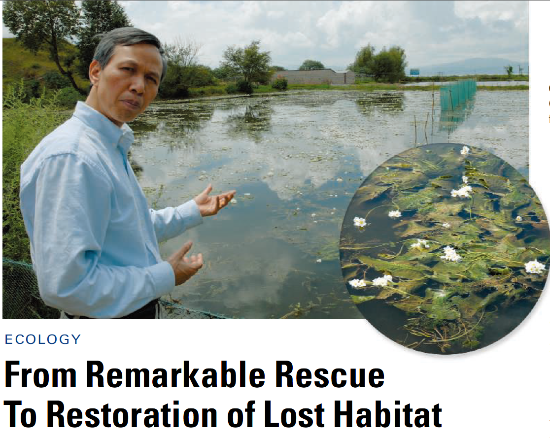 “海菜花—滇池金线鲃—背角无齿蚌”立体修复模式得到Science报道 (蒋万胜 供图)