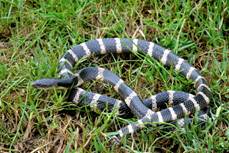 隶属于眼镜蛇科Elapidae环蛇属,剧毒蛇类。生活于海拔1300m以下的平原或山地。银环蛇在夜间活动,多栖息水边,以鱼、蛙、蛇、鼠为食物。卵生,繁殖期在8-9月。云南分布于滇中、滇南、滇东南等地区。