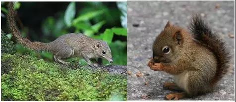 左:树鼩;右:松鼠。图片来自网络