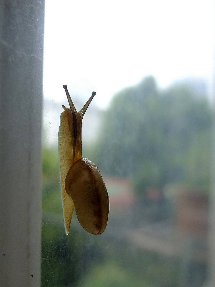 在玻璃上爬行的蜗牛(图片来源于网络)