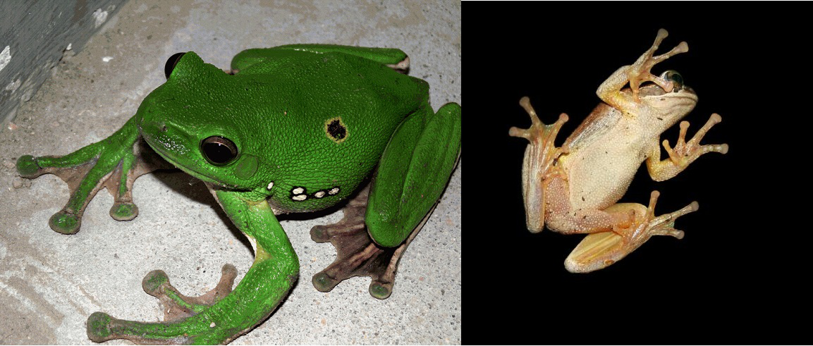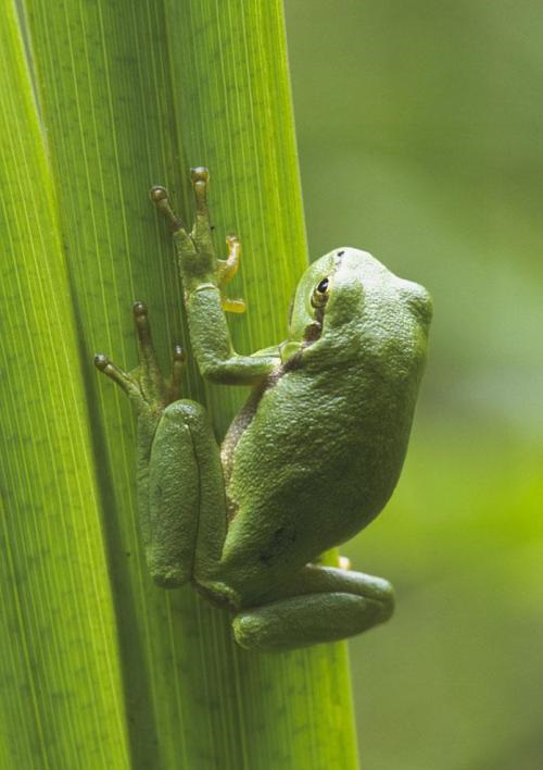 两栖动物中使用吸盘的种类也不少,树蛙和雨蛙的指和趾端长着肉质吸盘,可以爬到高高的树上;湍蛙的指和趾端也长着大大的吸盘,可以攀爬光滑的岩石,湍蛙的蝌蚪身体下面也长着吸盘,在湍急的水流中可以牢牢吸附在水中的岩石上。