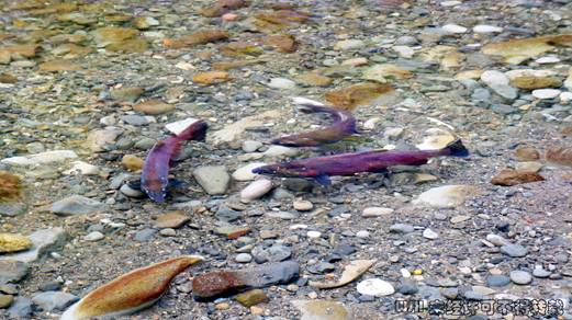 图5 哥伦比亚河内陆河流尽头的大马哈鱼,疲惫而安宁,它们产下卵之后,便在这里终息。(王建红拍摄于美国波特兰)