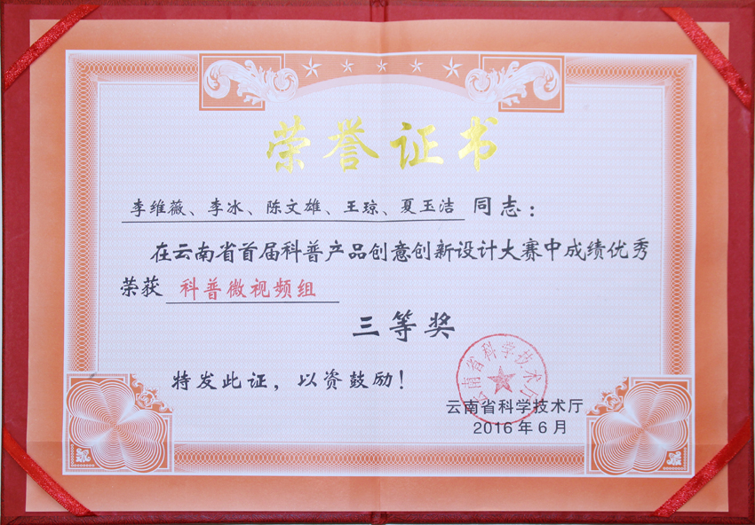 云南省首届科普产品创意创新设计大赛科普微视频三等奖