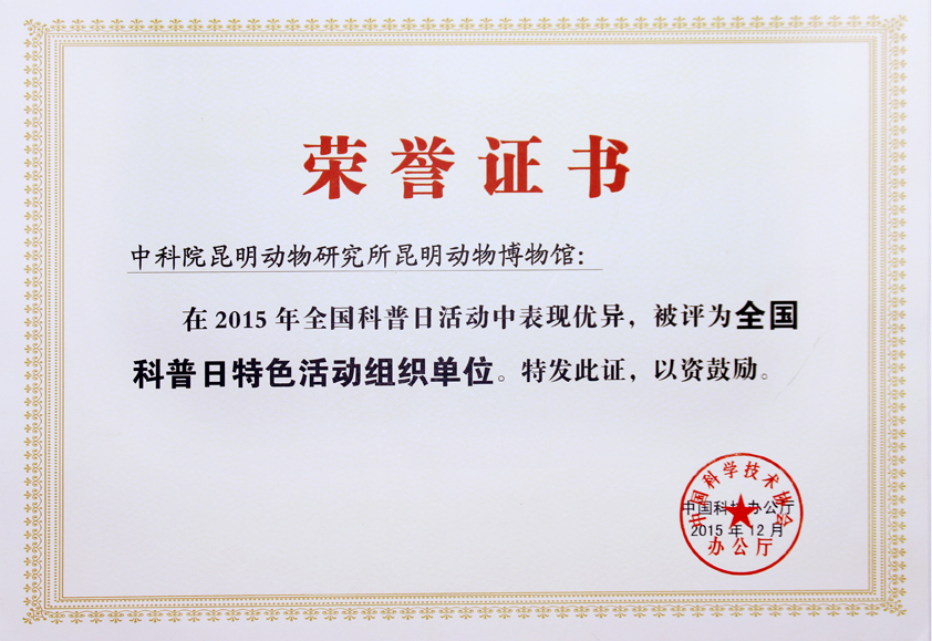2015年度全国科普日特色活动组织奖