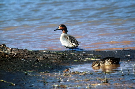 绿翅鸭 Anas crecca 栖息于湖泊、水库、江河、坝塘等水域中,也常见在水边草丛和农田中活动。多结大群,也与白骨顶、绿头鸭等水禽混群漂浮在水面上觅食,或在草地、农田中取食。食物以水草、草籽、稻谷等植物性食物为主。也取食螺蛳、小形软体动物和昆虫等动物性食物。冬季广泛分布于云南各湿地中,为冬候鸟。
