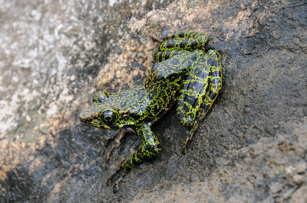 突吻湍蛙是蛙科Ranidae湍蛙属的两栖动物。体型较大,体长可达100毫米。后肢特别长,但并不粗壮。吻部较长。指、趾端有膨大的吸盘。生活在植被较好的山地溪流及其附近,主要在瀑布区活动。在云南主要分布于东南部。