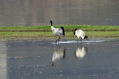 黑颈鹤属大型涉禽,是世界15种鹤中唯一终身栖居于高原的鹤。栖息于高原湖泊、水库、沼泽等地的浅滩地带,也见于草地、山坡耕作地中。结大群活动。在沼泽地、农田和草地中觅食,食物主要为植物的种子、根茎和农作物,有时也取食水生昆虫及蚌类。黑颈鹤为青藏高原的特有种。它们春夏季在青藏高原上繁殖,秋冬季在云贵高原越冬。云南西北部和东北部是黑颈鹤的主要越冬地。属国家Ⅰ级重点保护野生动物和《濒危野生动植物种国际贸易公约》(CITES)附录Ⅰ物种。